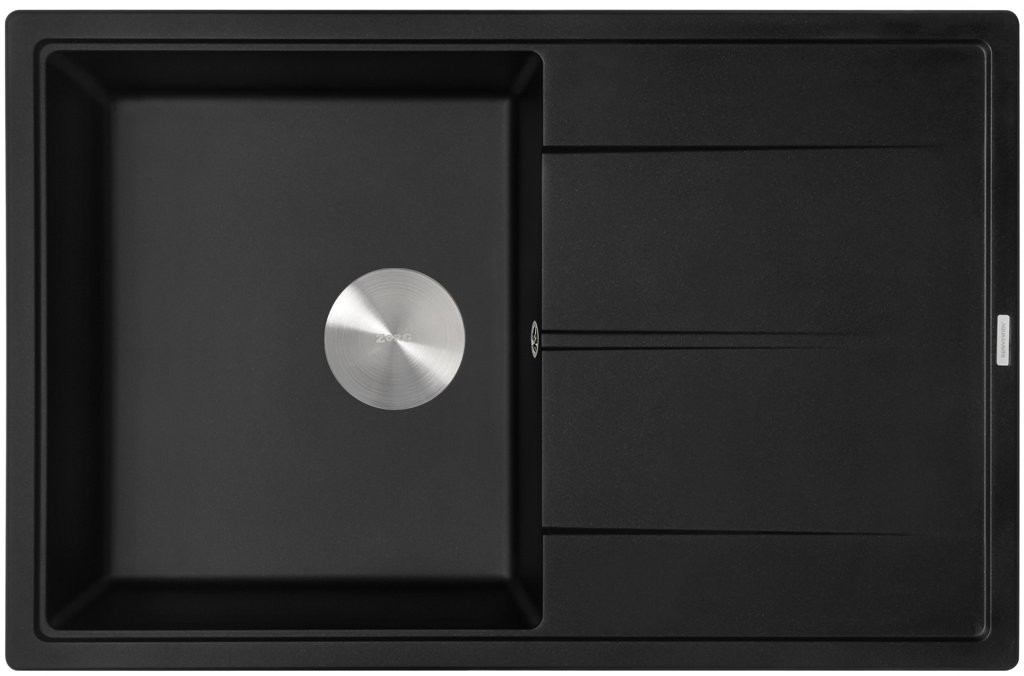 Кухонная мойка с сифоном ZORG Rock 78 PREMIUM black metallic черный металлик - ширина: 78 см, длина: 51 см, глубина чаши: 20 см, цвет: Чёрный, материал: Искусственный камень