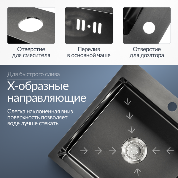 Мойка нержавейка 5050 PVD гармонично вписывается в кухонное пространство благодаря компактным габаритам 50 × 50 см. Кухонная мойка из нержавеющей стали сочетает современный дизайн с практичностью, создавая комфортные условия для ежедневного использования.