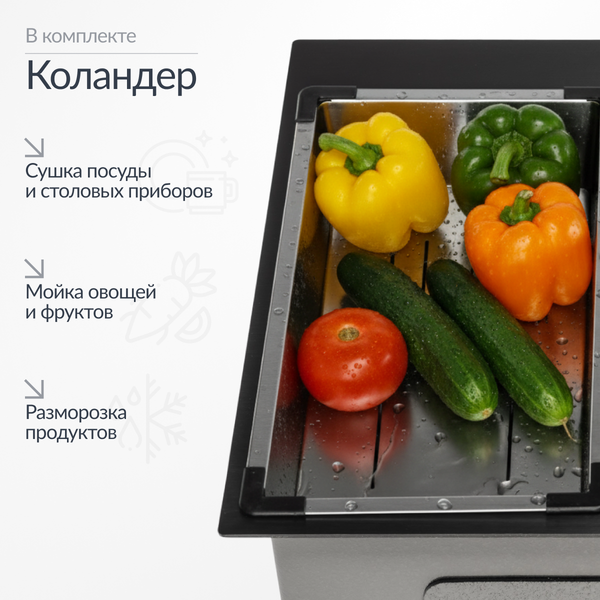 | Комплектация: | коландер, дозатор для моющего средства, сифон |