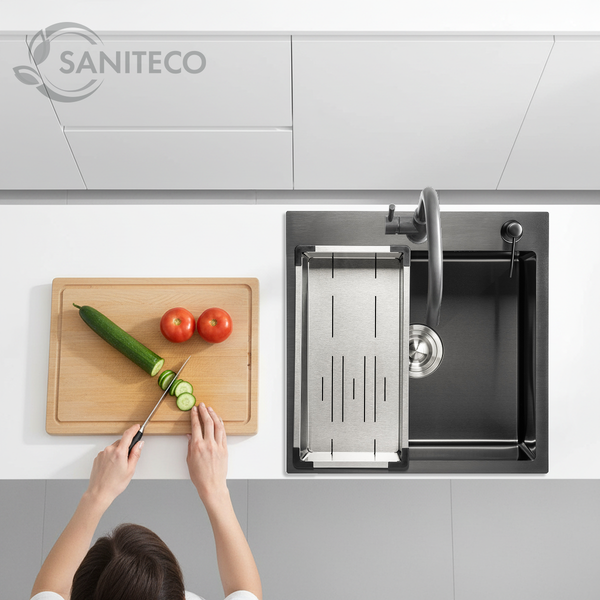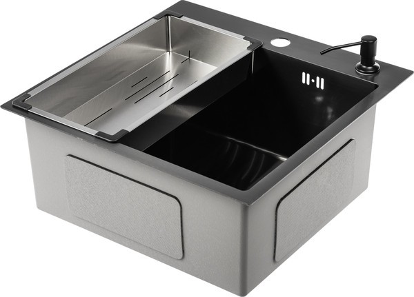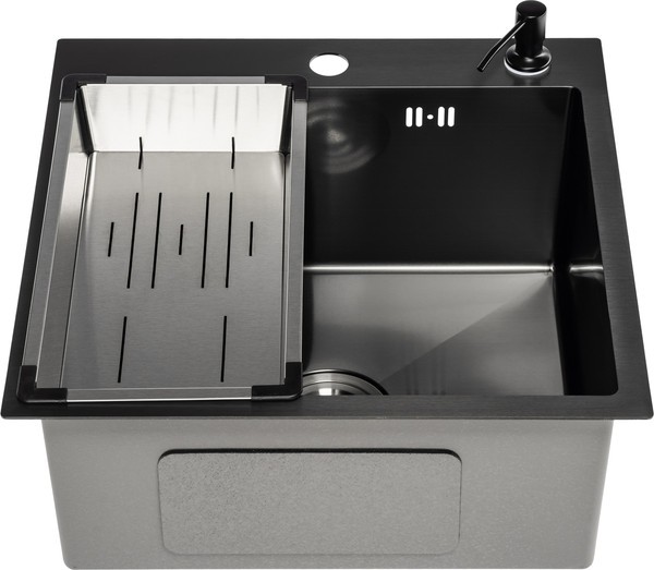Мойка для кухни Saniteco 5050 PVD (с сифоном, дозатором и коландером)