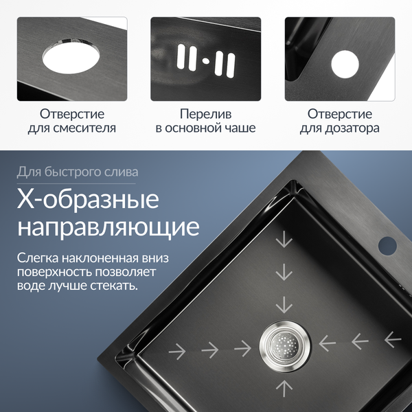 Мойка кухонная 5060 PVD (с сифоном) — современное решение для кухни. Кухонная мойка из нержавеющей стали с PVD-покрытием подходит для любого интерьера и добавляет удобство в повседневном использовании. Прямоугольная мойка для кухни с одной глубокой чашей позволяет комфортно мыть посуду и продукты питания, экономя время и усилия.