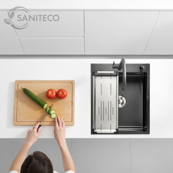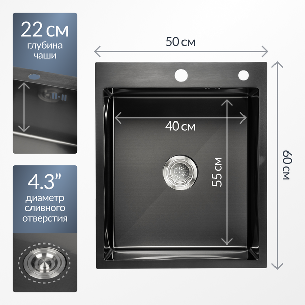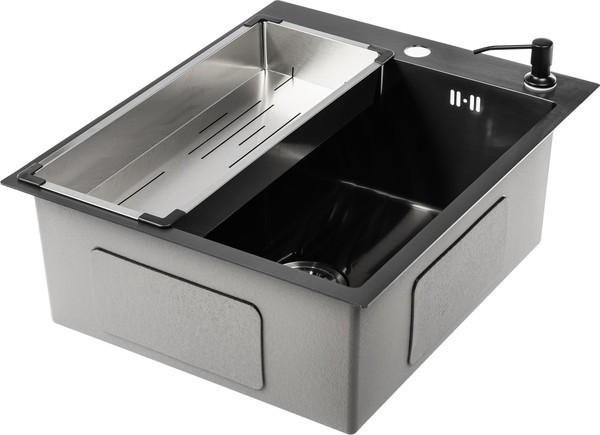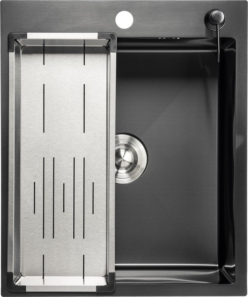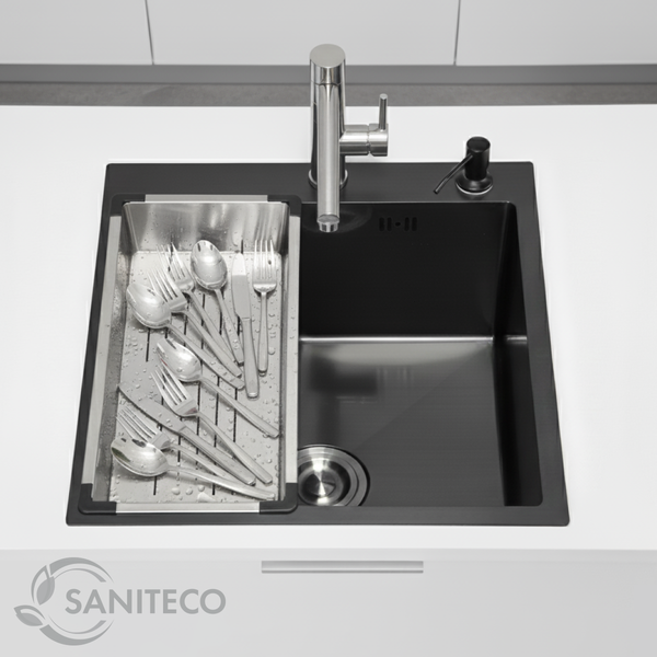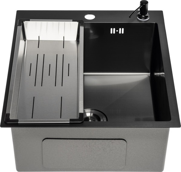 Мойка для кухни Saniteco 5060 PVD (с сифоном, дозатором и коландером)