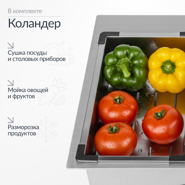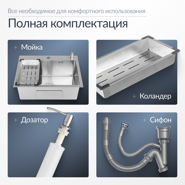 - Комплектация: сифон, дозатор и коландер в комплекте.
