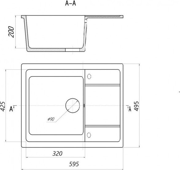 Модель имеет одну чашу с расположением крыла справа, что упрощает процесс мытья посуды и подготовки ингредиентов. Перелив в основной чаше предотвращает переполнение, а наличие намеченных отверстий предоставляют возможность адаптации мойки под индивидуальные потребности.