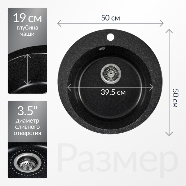 - Отверстие для смесителя — удобство установки.