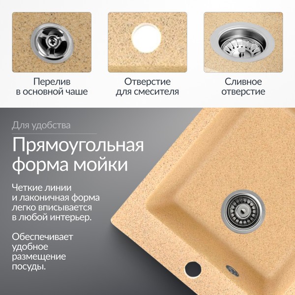 Мойка кухонная Silva в цвете песок — практичное и стильное решение для современных кухонных интерьеров. Изготовленная из керамогранита, мойка предлагает высокую прочность и стойкость к повреждениям. Врезной способ установки позволяет легко интегрировать мойку в любую столешницу. Прямоугольная форма обеспечивает оптимальное использование рабочей поверхности, а матовая текстура цвета песок добавляет уют и элегантность. Кухонная мойка Silva станет отличным дополнением к интерьеру.