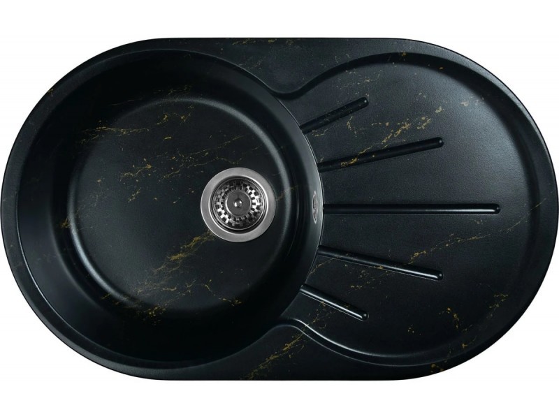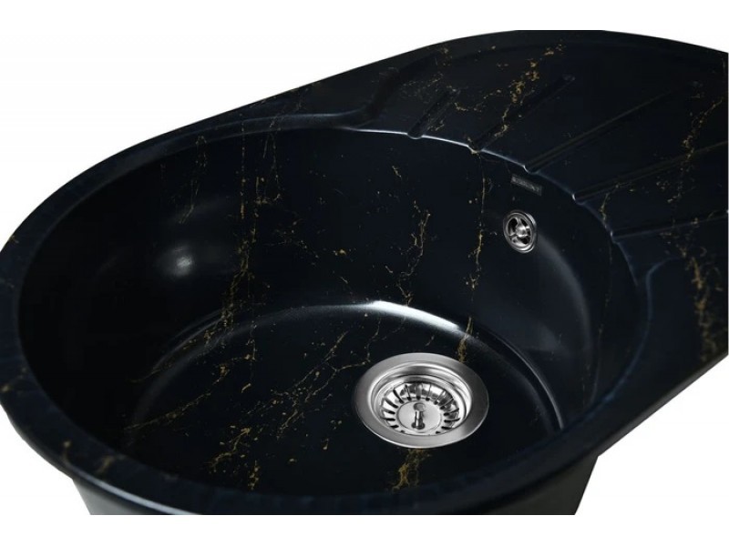 Новая коллекция каменных моек с расцветками под мрамор представляет собой стильные и функциональные решения для вашей кухни, которые способны преобразить любой интерьер и добавить ему изысканности. Мойки доступны в различных оттенках, имитирующих различные виды мрамора, от классического белого до более экзотических цветов, таких как черный или серый мрамор. Это позволяет подобрать мойку, которая идеально сочетается с интерьером вашей кухни и соответствует вашим предпочтениям.Важно! Каждая прожилка создана индивидуально, делая каждую мойку уникальной и неповторимой.Элегантная овальная мойка с крылом и круглой чашей позволит разместить большое количество грязной и чистой посуды. Желоба для слива воды в форме лучей солнца обеспечивают равномерный слив со всей площадки для сушки.Раковина изготовлена из композитного материала «Искусственный гранит». Состав материала: 80% гранитно-мраморная крошка, 20% полимерные связующие. Данная смесь природных материалов позволяет достичь максимальной прочности моек, их износостойкости и долговечности.Кухонная мойка обладает следующими преимуществами:
