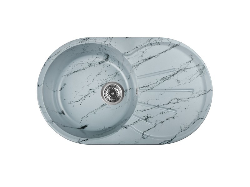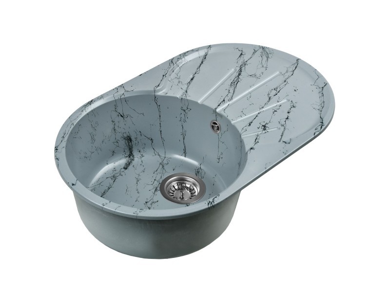 Новая коллекция каменных моек с расцветками под мрамор представляет собой стильные и функциональные решения для вашей кухни, которые способны преобразить любой интерьер и добавить ему изысканности. Мойки доступны в различных оттенках, имитирующих различные виды мрамора, от классического белого до более экзотических цветов, таких как черный или серый мрамор. Это позволяет подобрать мойку, которая идеально сочетается с интерьером вашей кухни и соответствует вашим предпочтениям.Важно! Каждая прожилка создана индивидуально, делая каждую мойку уникальной и неповторимой.Элегантная овальная мойка с крылом и круглой чашей позволит разместить большое количество грязной и чистой посуды. Желоба для слива воды в форме лучей солнца обеспечивают равномерный слив со всей площадки для сушки.Раковина изготовлена из композитного материала «Искусственный гранит». Состав материала: 80% гранитно-мраморная крошка, 20% полимерные связующие. Данная смесь природных материалов позволяет достичь максимальной прочности моек, их износостойкости и долговечности.Кухонная мойка обладает следующими преимуществами: