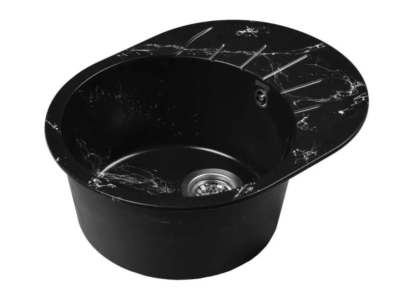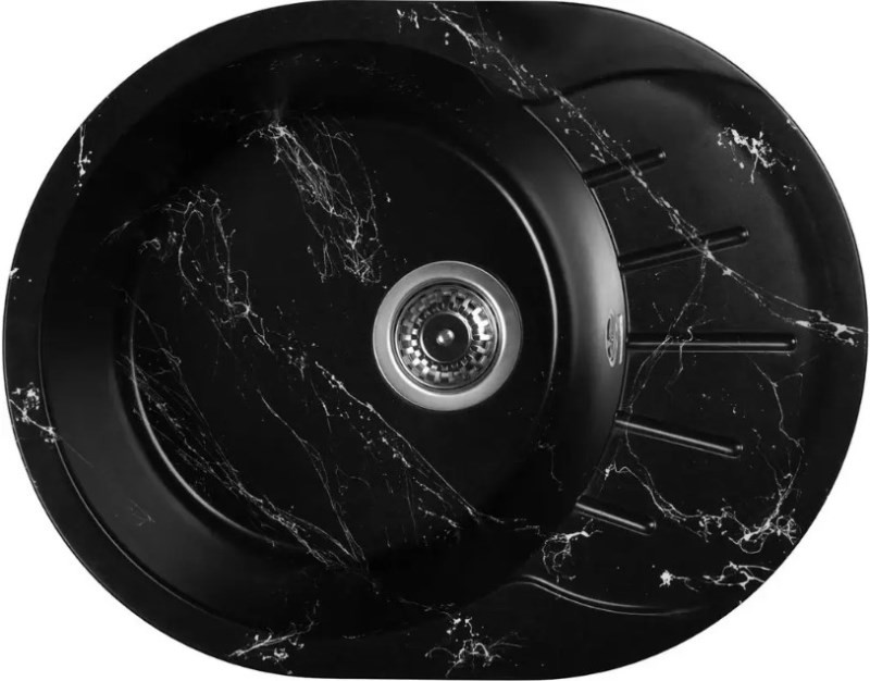 Новая коллекция каменных моек с расцветками под мрамор представляет собой стильные и функциональные решения для вашей кухни, которые способны преобразить любой интерьер и добавить ему изысканности. Мойки доступны в различных оттенках, имитирующих различные виды мрамора, от классического белого до более экзотических цветов, таких как черный или серый мрамор. Это позволяет подобрать мойку, которая идеально сочетается с интерьером вашей кухни и соответствует вашим предпочтениям. Каждая прожилка создана индивидуально, делая каждую мойку уникальной и неповторимой. Компактная овальная мойка с крылом для сушки посуды идеальна для маленьких кухонь с ограниченным пространством. Сочетание глубокой чаши и рельефного крыла обеспечивают слив воды с площадки для мокрой посуды. Раковина изготовлена из композитного материала 80% гранитно-мраморная крошка и 20% полимерные связующие. Данная смесь природных материалов позволяет достичь максимальной прочности моек, их износостойкости и долговечности. Отметки для высверливания отверстия намечены с обратной стороны мойки. Отверстие рекомендуется делать алмазной коронкой Ø35 мм.Кухонная мойка обладает следующими преимуществами: устойчивость к термоудару до 180 градусов, не впитывает пищевые красители, имеет защиту от микро-царапин, ультрафиолета, грибковых поражений и запахов, пространственное армирование увеличивает прочность изделия, низкое температурное расширение исключает подвижность мойки на столешнице, что сохраняет гидроизоляцию ее кромки.Монтаж мойки прост, так как из-за достаточного веса, изделие можно не закреплять на столешнице каким либо специальным способом. Мойка укомплектована сифоном, который обеспечивает надежную защиту от засоров и утечек, с разборным выпуском, нержавеющей решеткой, отводом для бытовой техники, с круглым переливом. Выпуск и корзинный клапан изготовлены из нержавеющей стали, комплектующие и винт — из никелированной латуни. Укомплектован гофротрубой для подключения к канализации.