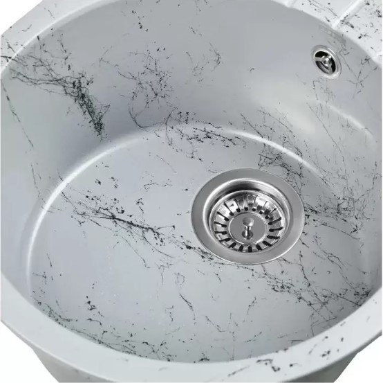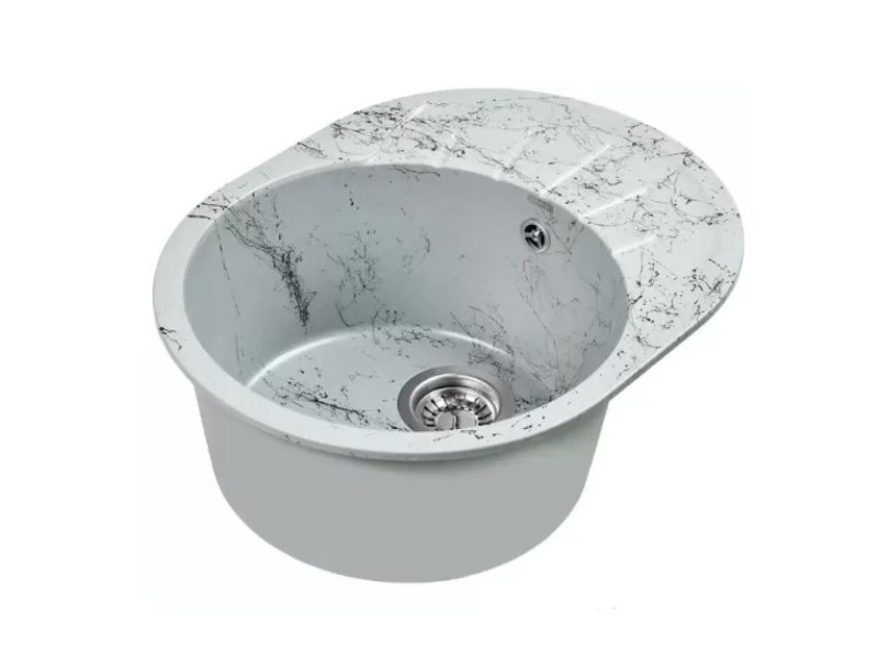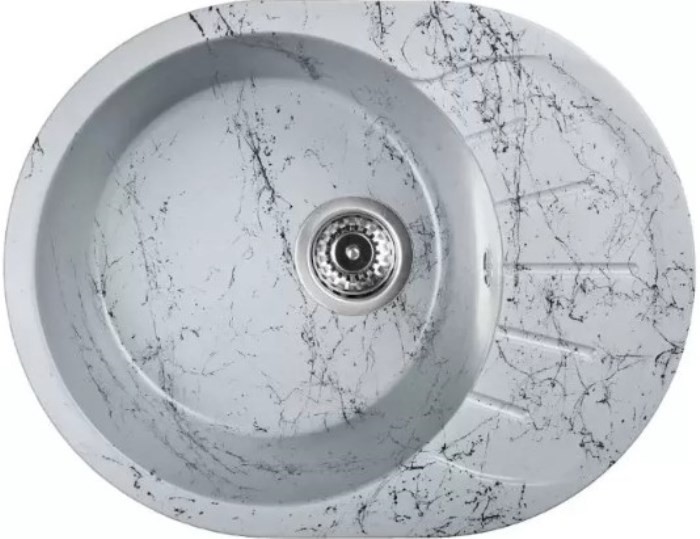 Новая коллекция каменных моек с расцветками под мрамор представляет собой стильные и функциональные решения для вашей кухни, которые способны преобразить любой интерьер и добавить ему изысканности. Мойки доступны в различных оттенках, имитирующих различные виды мрамора, от классического белого до более экзотических цветов, таких как черный или серый мрамор. Это позволяет подобрать мойку, которая идеально сочетается с интерьером вашей кухни и соответствует вашим предпочтениям. Каждая прожилка создана индивидуально, делая каждую мойку уникальной и неповторимой. Компактная овальная мойка с крылом для сушки посуды идеальна для маленьких кухонь с ограниченным пространством. Сочетание глубокой чаши и рельефного крыла обеспечивают слив воды с площадки для мокрой посуды. Раковина изготовлена из композитного материала 80% гранитно-мраморная крошка и 20% полимерные связующие. Данная смесь природных материалов позволяет достичь максимальной прочности моек, их износостойкости и долговечности. Отметки для высверливания отверстия намечены с обратной стороны мойки. Отверстие рекомендуется делать алмазной коронкой Ø35 мм.Кухонная мойка обладает следующими преимуществами: устойчивость к термоудару до 180 градусов, не впитывает пищевые красители, имеет защиту от микро-царапин, ультрафиолета, грибковых поражений и запахов, пространственное армирование увеличивает прочность изделия, низкое температурное расширение исключает подвижность мойки на столешнице, что сохраняет гидроизоляцию ее кромки.Монтаж мойки прост, так как из-за достаточного веса, изделие можно не закреплять на столешнице каким либо специальным способом. Мойка укомплектована сифоном, который обеспечивает надежную защиту от засоров и утечек, с разборным выпуском, нержавеющей решеткой, отводом для бытовой техники, с круглым переливом. Выпуск и корзинный клапан изготовлены из нержавеющей стали, комплектующие и винт — из никелированной латуни. Укомплектован гофротрубой для подключения к канализации.