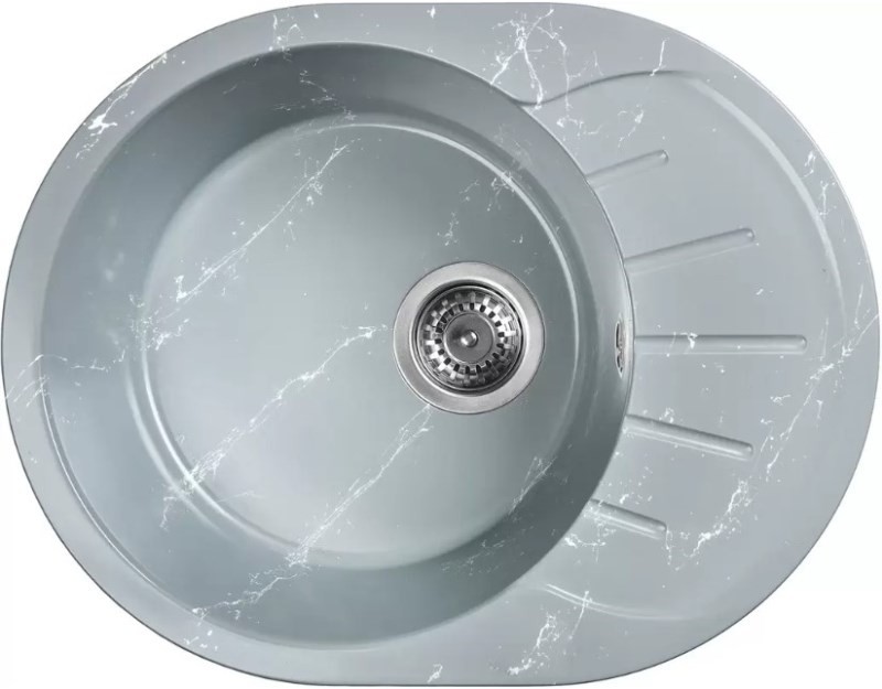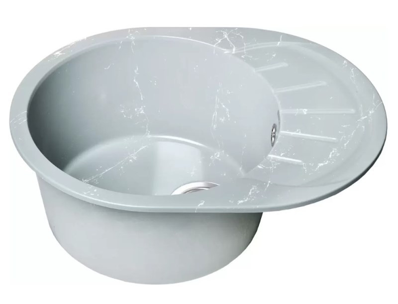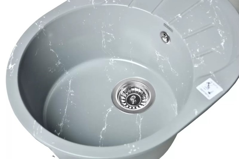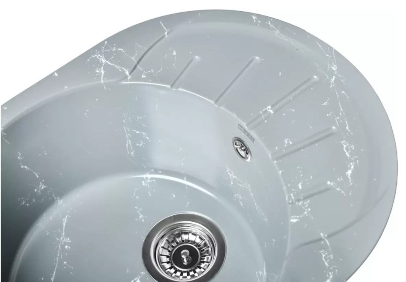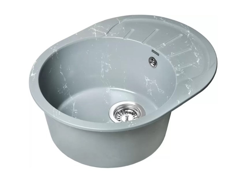Новая коллекция каменных моек с расцветками под мрамор представляет собой стильные и функциональные решения для вашей кухни, которые способны преобразить любой интерьер и добавить ему изысканности. Мойки доступны в различных оттенках, имитирующих различные виды мрамора, от классического белого до более экзотических цветов, таких как черный или серый мрамор. Это позволяет подобрать мойку, которая идеально сочетается с интерьером вашей кухни и соответствует вашим предпочтениям. Каждая прожилка создана индивидуально, делая каждую мойку уникальной и неповторимой. Компактная овальная мойка с крылом для сушки посуды идеальна для маленьких кухонь с ограниченным пространством. Сочетание глубокой чаши и рельефного крыла обеспечивают слив воды с площадки для мокрой посуды. Раковина изготовлена из композитного материала 80% гранитно-мраморная крошка и 20% полимерные связующие. Данная смесь природных материалов позволяет достичь максимальной прочности моек, их износостойкости и долговечности. Отметки для высверливания отверстия намечены с обратной стороны мойки. Отверстие рекомендуется делать алмазной коронкой Ø35 мм.Кухонная мойка обладает следующими преимуществами: устойчивость к термоудару до 180 градусов, не впитывает пищевые красители, имеет защиту от микро-царапин, ультрафиолета, грибковых поражений и запахов, пространственное армирование увеличивает прочность изделия, низкое температурное расширение исключает подвижность мойки на столешнице, что сохраняет гидроизоляцию ее кромки.Монтаж мойки прост, так как из-за достаточного веса, изделие можно не закреплять на столешнице каким либо специальным способом. Мойка укомплектована сифоном, который обеспечивает надежную защиту от засоров и утечек, с разборным выпуском, нержавеющей решеткой, отводом для бытовой техники, с круглым переливом. Выпуск и корзинный клапан изготовлены из нержавеющей стали, комплектующие и винт — из никелированной латуни. Укомплектован гофротрубой для подключения к канализации.