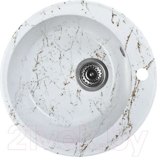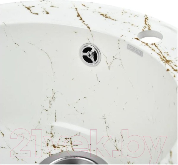 Раковина изготовлена из композитного материала «Искусственный гранит». Состав материала: 80% гранитно-мраморная крошка, 20% полимерные связующие. Данная смесь природных материалов позволяет достичь максимальной прочности моек, их износостойкости и долговечности.