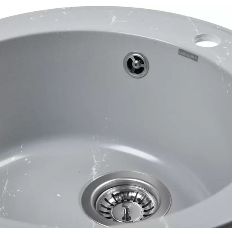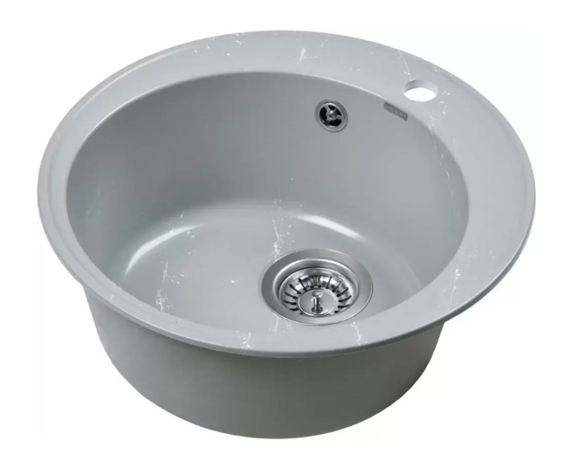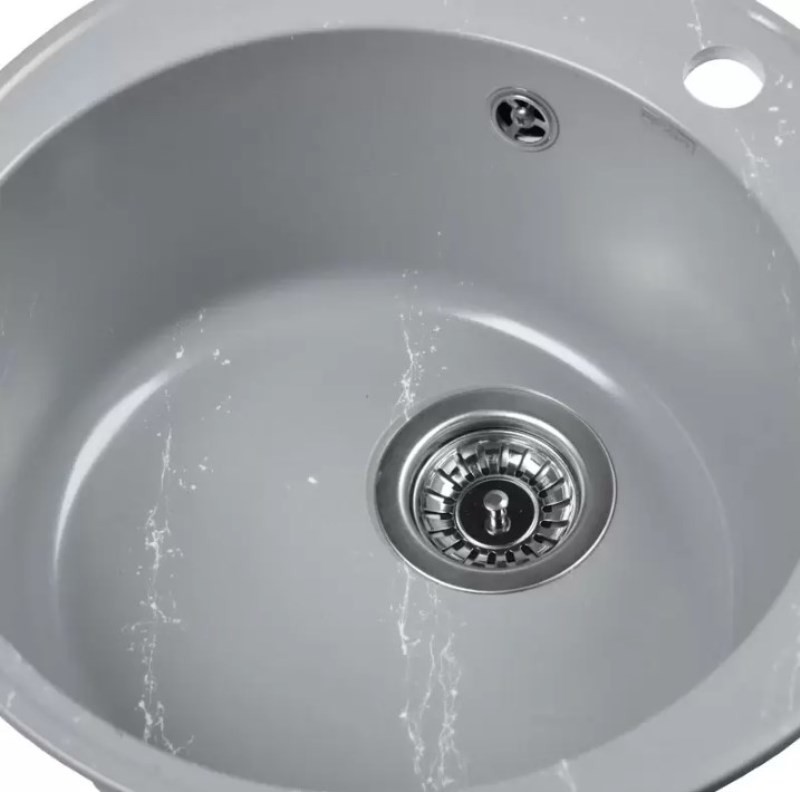 Раковина изготовлена из композитного материала «Искусственный гранит». Состав материала: 80% гранитно-мраморная крошка, 20% полимерные связующие. Данная смесь природных материалов позволяет достичь максимальной прочности моек, их износостойкости и долговечности.