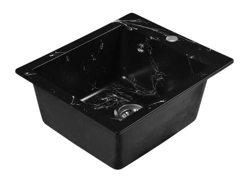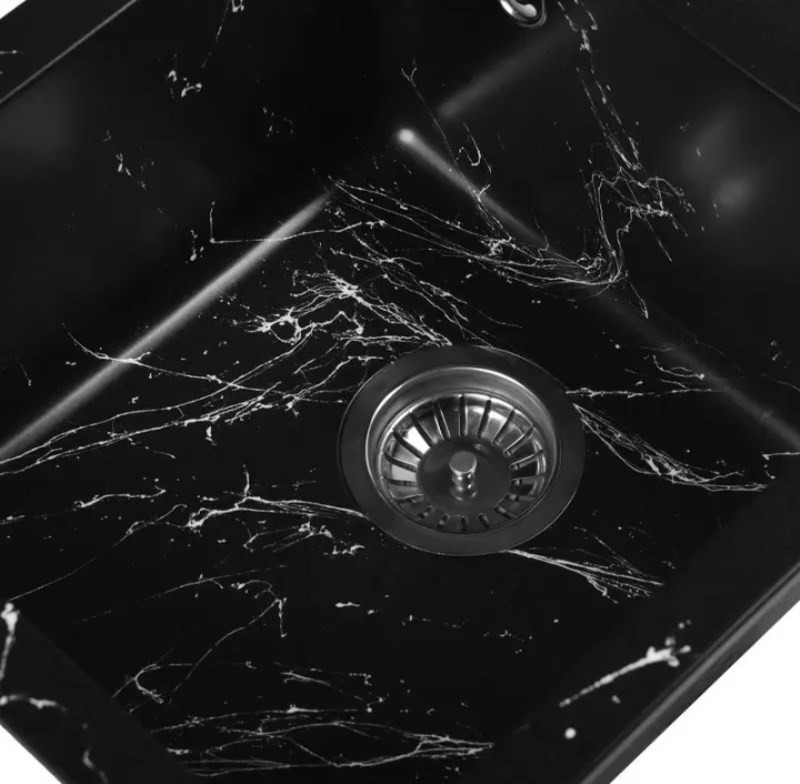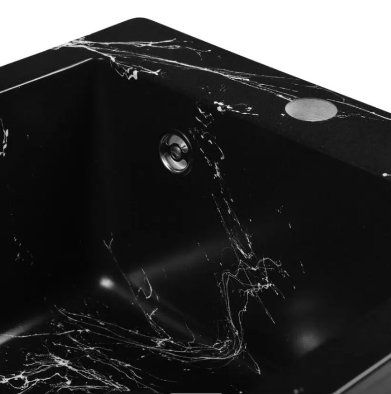 Новая коллекция каменных моек с расцветками под мрамор представляет собой стильные и функциональные решения для вашей кухни, которые способны преобразить любой интерьер и добавить ему изысканности. Мойки доступны в различных оттенках, имитирующих различные виды мрамора, от классического белого до более экзотических цветов, таких как черный или серый мрамор. Это позволяет подобрать мойку, которая идеально сочетается с интерьером вашей кухни и соответствует вашим предпочтениям. Каждая прожилка создана индивидуально, делая каждую мойку уникальной и неповторимой. Классическая прямоугольная мойка компактного размера позволяет установить ее в узкий кухонный модуль. Глубокая чаша вмещает большое количество комплектов посуды. Мойка без крыла имеет готовое отверстие для смесителя Ø35 мм. Раковина изготовлена из композитного материала: 80% гранитно-мраморная крошка, 20% полимерные связующие. Данная смесь природных материалов позволяет достичь максимальной прочности моек, их износостойкости и долговечности. Кухонная мойка обладает следующими преимуществами: устойчивость к термоудару до 180 градусов, не впитывает пищевые красители, имеет защиту от микро-царапин, ультрафиолета, грибковых поражений и запахов, пространственное армирование увеличивает прочность изделия, низкое температурное расширение исключает подвижность мойки на столешнице, что сохраняет гидроизоляцию ее кромки. Мойка укомплектована сифоном, который обеспечивает надежную защиту от засоров и утечек. Выпуск и корзинный клапан изготовлены из нержавеющей стали, комплектующие и винт — из никелированной латуни. Укомплектован гофротрубой для подключения к канализации.