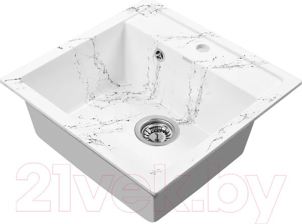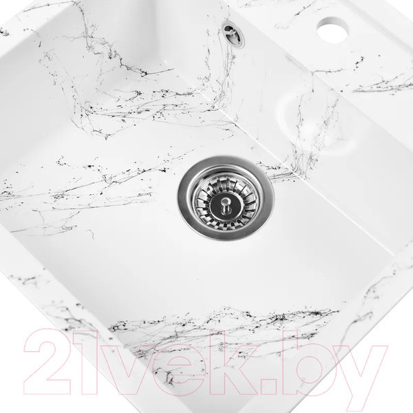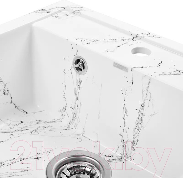 Новая коллекция каменных моек с расцветками под мрамор представляет собой стильные и функциональные решения для вашей кухни, которые способны преобразить любой интерьер и добавить ему изысканности. Мойки доступны в различных оттенках, имитирующих различные виды мрамора, от классического белого до более экзотических цветов, таких как черный или серый мрамор. Это позволяет подобрать мойку, которая идеально сочетается с интерьером вашей кухни и соответствует вашим предпочтениям. Каждая прожилка создана индивидуально, делая каждую мойку уникальной и неповторимой. Классическая прямоугольная мойка компактного размера позволяет установить ее в узкий кухонный модуль. Глубокая чаша вмещает большое количество комплектов посуды. Мойка без крыла имеет готовое отверстие для смесителя Ø35 мм. Раковина изготовлена из композитного материала: 80% гранитно-мраморная крошка, 20% полимерные связующие. Данная смесь природных материалов позволяет достичь максимальной прочности моек, их износостойкости и долговечности. Кухонная мойка обладает следующими преимуществами: устойчивость к термоудару до 180 градусов, не впитывает пищевые красители, имеет защиту от микро-царапин, ультрафиолета, грибковых поражений и запахов, пространственное армирование увеличивает прочность изделия, низкое температурное расширение исключает подвижность мойки на столешнице, что сохраняет гидроизоляцию ее кромки. Мойка укомплектована сифоном который обеспечивает надежную защиту от засоров и утечек. Выпуск и корзинный клапан изготовлены из нержавеющей стали, комплектующие и винт — из никелированной латуни. Укомплектован гофротрубой для подключения к канализации.