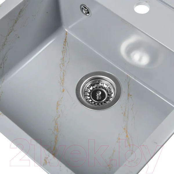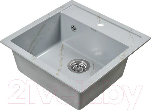 Новая коллекция каменных моек с расцветками под мрамор представляет собой стильные и функциональные решения для вашей кухни, которые способны преобразить любой интерьер и добавить ему изысканности. Мойки доступны в различных оттенках, имитирующих различные виды мрамора, от классического белого до более экзотических цветов, таких как черный или серый мрамор. Это позволяет подобрать мойку, которая идеально сочетается с интерьером вашей кухни и соответствует вашим предпочтениям. Каждая прожилка создана индивидуально, делая каждую мойку уникальной и неповторимой. Классическая прямоугольная мойка компактного размера позволяет установить ее в узкий кухонный модуль. Глубокая чаша вмещает большое количество комплектов посуды. Мойка без крыла имеет готовое отверстие для смесителя Ø35 мм. Раковина изготовлена из композитного материала: 80% гранитно-мраморная крошка, 20% полимерные связующие. Данная смесь природных материалов позволяет достичь максимальной прочности моек, их износостойкости и долговечности. Кухонная мойка обладает следующими преимуществами: устойчивость к термоудару до 180 градусов, не впитывает пищевые красители, имеет защиту от микро-царапин, ультрафиолета, грибковых поражений и запахов, пространственное армирование увеличивает прочность изделия, низкое температурное расширение исключает подвижность мойки на столешнице, что сохраняет гидроизоляцию ее кромки. Мойка укомплектована сифоном который обеспечивает надежную защиту от засоров и утечек. Выпуск и корзинный клапан изготовлены из нержавеющей стали, комплектующие и винт — из никелированной латуни. Укомплектован гофротрубой для подключения к канализации.