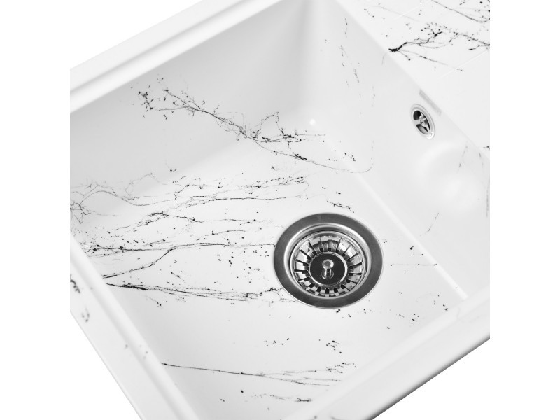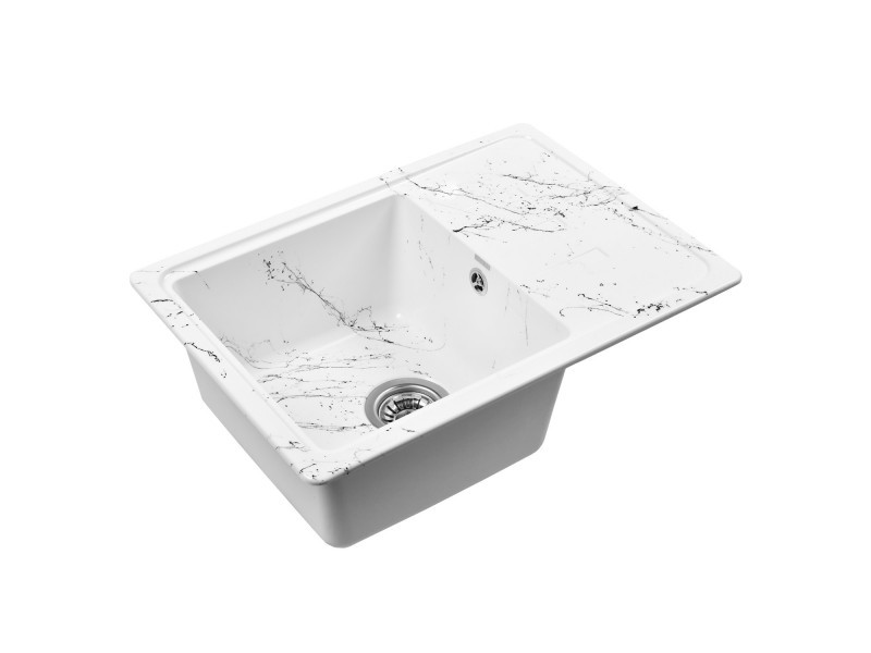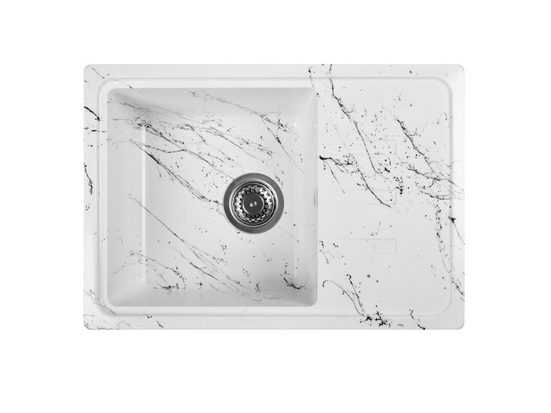 Компактная мойка с крылом. Закругленные края облегчают уборку, а желоба на крыле обеспечивают слив воды с мокрой посуды. Строгие прямые линии подчеркнуты легким овальным срезом острых углов