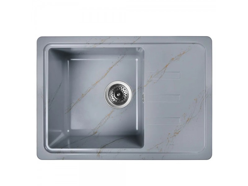 Компактная мойка с крылом. Закругленные края облегчают уборку, а желоба на крыле обеспечивают слив воды с мокрой посуды. Строгие прямые линии подчеркнуты легким овальным срезом острых углов