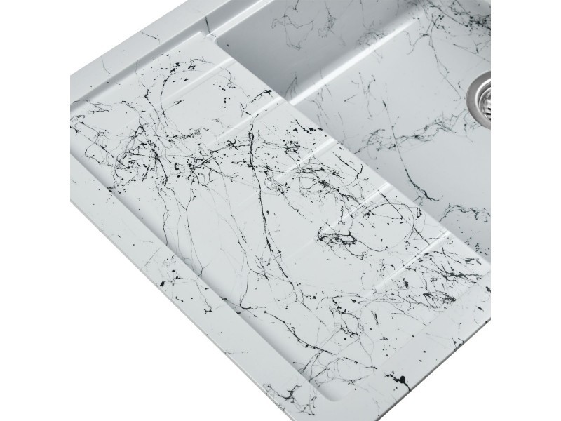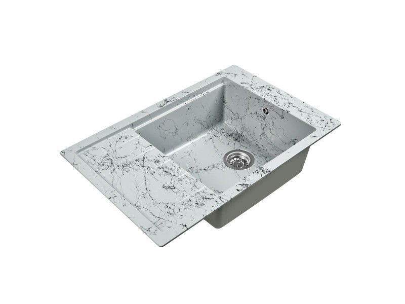 Небольшая прямоугольная мойка с крылом строгого лаконичного дизайна облегчает мытье и сушку посуды, оставляя свободное пространство на рабочей зоне кухонного стола