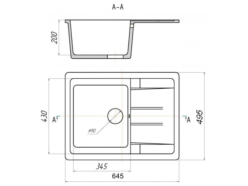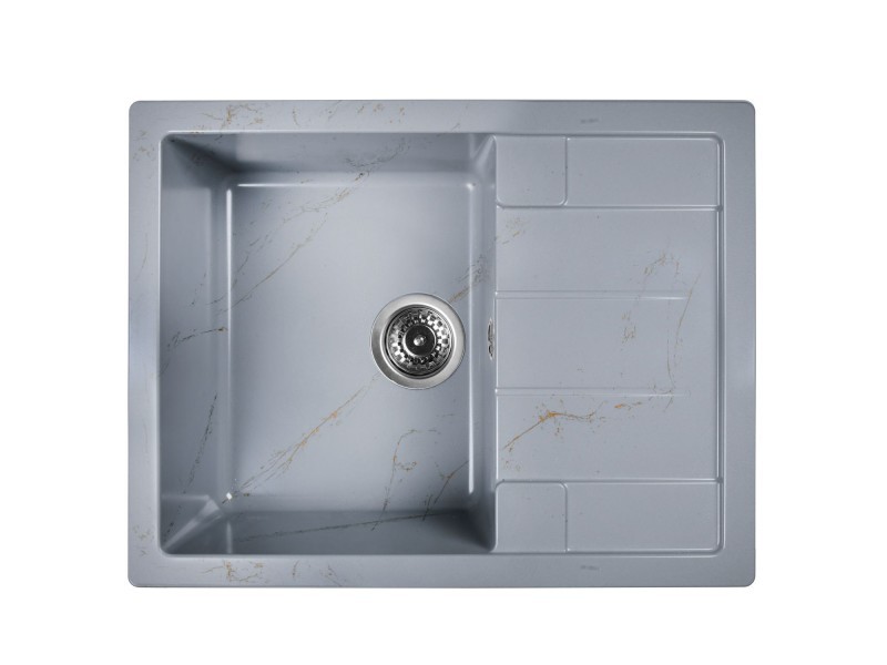 Небольшая прямоугольная мойка с крылом строгого лаконичного дизайна облегчает мытье и сушку посуды, оставляя свободное пространство на рабочей зоне кухонного стола