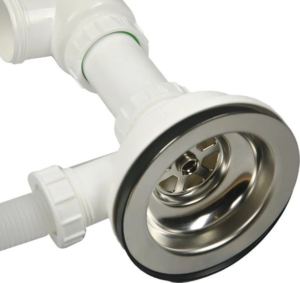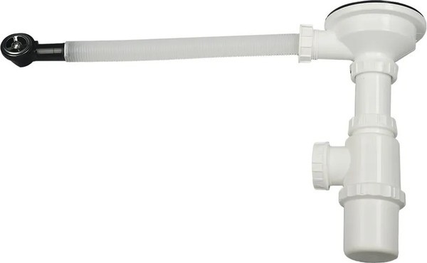 - мойка укомплектована сифоном с отводом для подключения посудомоечной (стиральной) машины и гофротрубой. Выпуск и корзинный клапан изготовлены из нержавеющей стали, комплектующие и винт — из никелированной латуни.