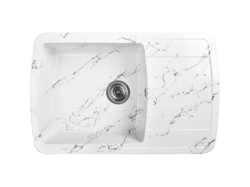 Новая коллекция каменных моек с расцветками под мрамор представляет собой стильные и функциональные решения для вашей кухни, которые способны преобразить любой интерьер и добавить ему изысканности. Мойки доступны в различных оттенках, имитирующих различные виды мрамора, от классического белого до более экзотических цветов, таких как черный или серый мрамор. Это позволяет подобрать мойку, которая идеально сочетается с интерьером вашей кухни и соответствует вашим предпочтениям. Каждая прожилка создана индивидуально, делая каждую мойку уникальной и неповторимой. Большая мойка из искусственного камня с крылом и широкой чашей. Плавные линии позволят вписать такую мойку в кухню любого дизайна. Легкий овал чаши позволяет разместить большое количество посуды. Универсальная мойка может устанавливаться крылом как в левую, так и в правую стороны. Отметки для высверливания отверстия намечены с обратной стороны крыла мойки. Вам остается выбрать нужную сторону и просверлить отверстие. Отверстие рекомендуется делать алмазной коронкой Ø35 мм. Раковина изготовлена из композитного материала: 80% гранитно-мраморная крошка, 20% полимерные связующие. Данная смесь природных материалов позволяет достичь максимальной прочности моек, их износостойкости и долговечности.