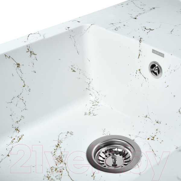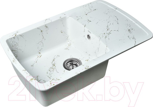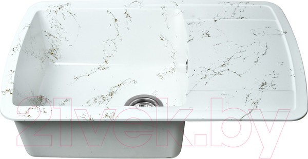 Новая коллекция каменных моек с расцветками под мрамор представляет собой стильные и функциональные решения для вашей кухни, которые способны преобразить любой интерьер и добавить ему изысканности. Мойки доступны в различных оттенках, имитирующих различные виды мрамора, от классического белого до более экзотических цветов, таких как черный или серый мрамор. Это позволяет подобрать мойку, которая идеально сочетается с интерьером вашей кухни и соответствует вашим предпочтениям. Каждая прожилка создана индивидуально, делая каждую мойку уникальной и неповторимой. Большая мойка из искусственного камня с крылом и широкой чашей. Плавные линии позволят вписать такую мойку в кухню любого дизайна. Легкий овал чаши позволяет разместить большое количество посуды. Универсальная мойка может устанавливаться крылом как в левую, так и в правую стороны. Отметки для высверливания отверстия намечены с обратной стороны крыла мойки. Вам остается выбрать нужную сторону и просверлить отверстие. Отверстие рекомендуется делать алмазной коронкой Ø35 мм. Раковина изготовлена из композитного материала: 80% гранитно-мраморная крошка, 20% полимерные связующие. Данная смесь природных материалов позволяет достичь максимальной прочности моек, их износостойкости и долговечности.
