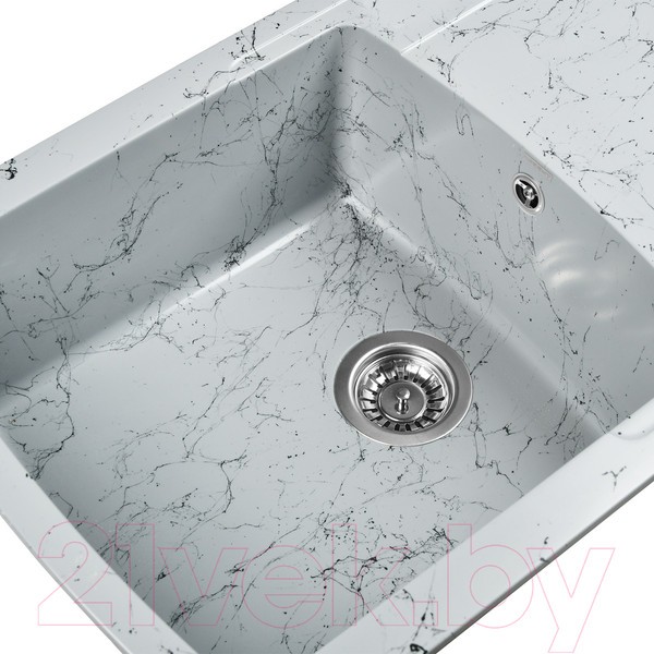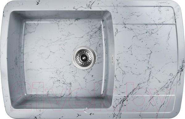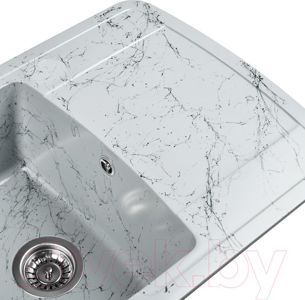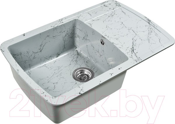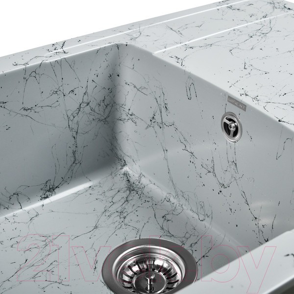 Новая коллекция каменных моек с расцветками под мрамор представляет собой стильные и функциональные решения для вашей кухни, которые способны преобразить любой интерьер и добавить ему изысканности. Мойки доступны в различных оттенках, имитирующих различные виды мрамора, от классического белого до более экзотических цветов, таких как черный или серый мрамор. Это позволяет подобрать мойку, которая идеально сочетается с интерьером вашей кухни и соответствует вашим предпочтениям. Каждая прожилка создана индивидуально, делая каждую мойку уникальной и неповторимой. Большая мойка из искусственного камня с крылом и широкой чашей. Плавные линии позволят вписать такую мойку в кухню любого дизайна. Легкий овал чаши позволяет разместить большое количество посуды. Универсальная мойка может устанавливаться крылом как в левую, так и в правую стороны. Отметки для высверливания отверстия намечены с обратной стороны крыла мойки. Вам остается выбрать нужную сторону и просверлить отверстие. Отверстие рекомендуется делать алмазной коронкой Ø35 мм. Раковина изготовлена из композитного материала: 80% гранитно-мраморная крошка, 20% полимерные связующие. Данная смесь природных материалов позволяет достичь максимальной прочности моек, их износостойкости и долговечности.