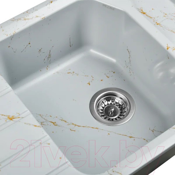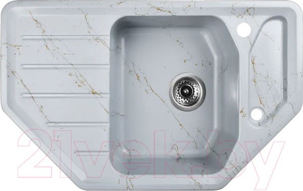 Новая коллекция каменных моек с расцветками под мрамор представляет собой стильные и функциональные решения для вашей кухни, которые способны преобразить любой интерьер и добавить ему изысканности. Мойки доступны в различных оттенках, имитирующих различные виды мрамора, от классического белого до более экзотических цветов, таких как черный или серый мрамор. Это позволяет подобрать мойку, которая идеально сочетается с интерьером вашей кухни и соответствует вашим предпочтениям. Каждая прожилка создана индивидуально, делая каждую мойку уникальной и неповторимой. Угловая мойка обладает классическими формами и благородным внешним видом, мойка подойдет как для современных, так и для классических интерьеров. Мойка состоит из трех функциональных зон: большой прямоугольной чаши, крыла для посуды и неглубокой площадки со сливом. Раковина изготовлена из композитного материала: 80% гранитно-мраморная крошка, 20% полимерные связующие. Данная смесь природных материалов позволяет достичь максимальной прочности моек, их износостойкости и долговечности.