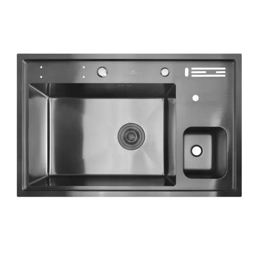 Кухонная мойка Wisent WM37850B графит материал: нержавеющая сталь 3 мм, цвет: графит, габариты мойки (ШхГ): 780х500 мм, глубина чаши: 220 мм, дозатор, сифон, ринзер, подставка для досточки, подставка для ножей