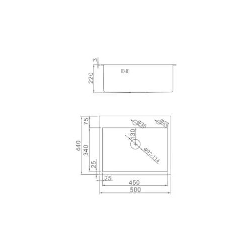 Кухонная мойка Wisent WS35044B PVD Графит размер мойки: 500x440 мм, размер чаши: 450x340 мм, глубина чаши: 220 мм