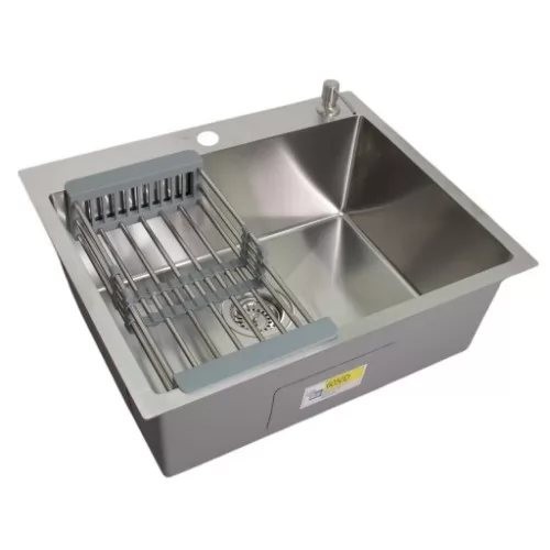 Кухонная мойка Wisent WS36050D Декор-Сатин материал: нержавеющая сталь 3 мм, цвет: сатин, габариты мойки (ШхГ): 600х500 мм, габариты чаши (ШхГ): 550х400 мм, глубина чаши: 220 мм, дозатор, сифон, коландер
