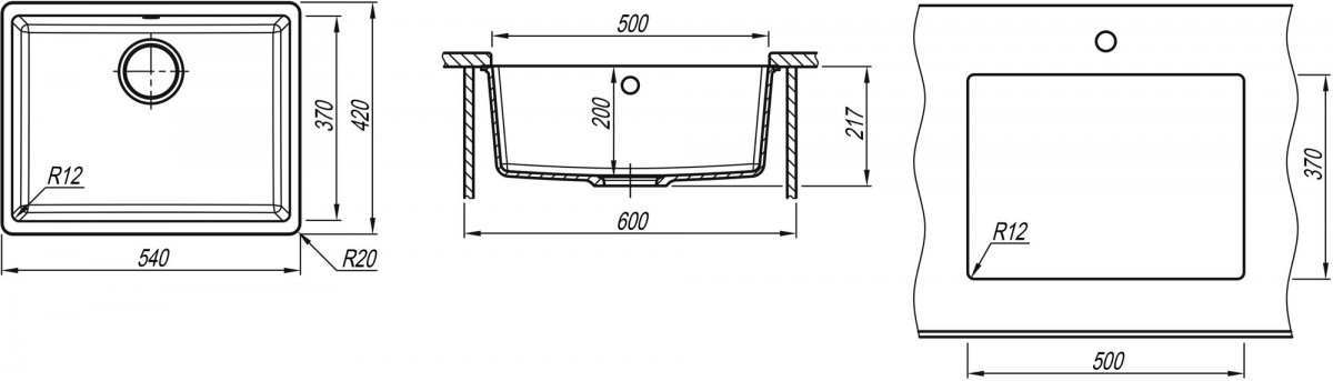 - Размер мойки 54 x 42 см