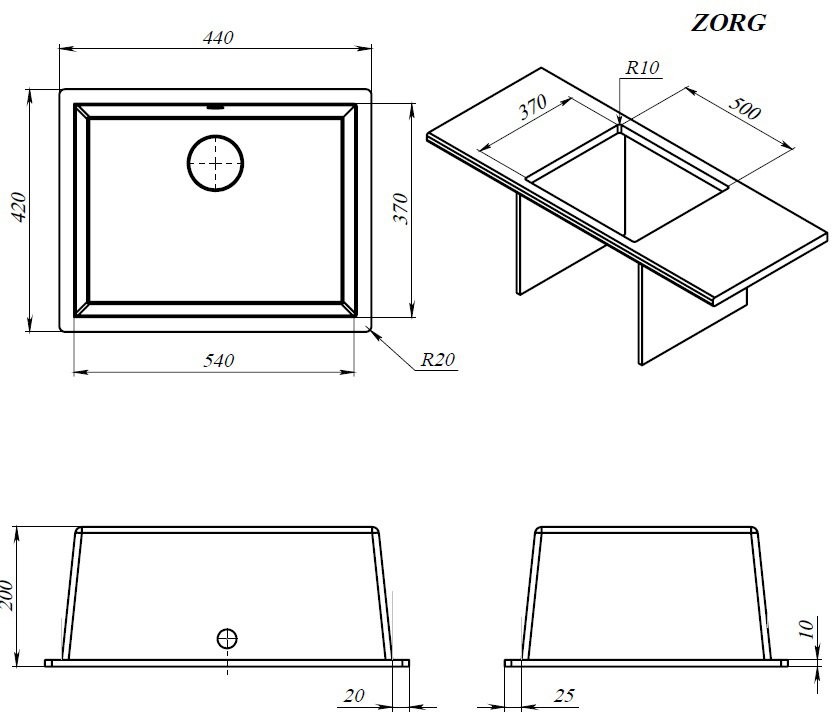 Мойка для кухни Zorg Fast 54 PREMIUM black metallic черный металлик, Ширина: 54 см, Длина: 42 см, Глубина чаши: 20 см, Цвет: Бежевый, Материал: Искусственный камень