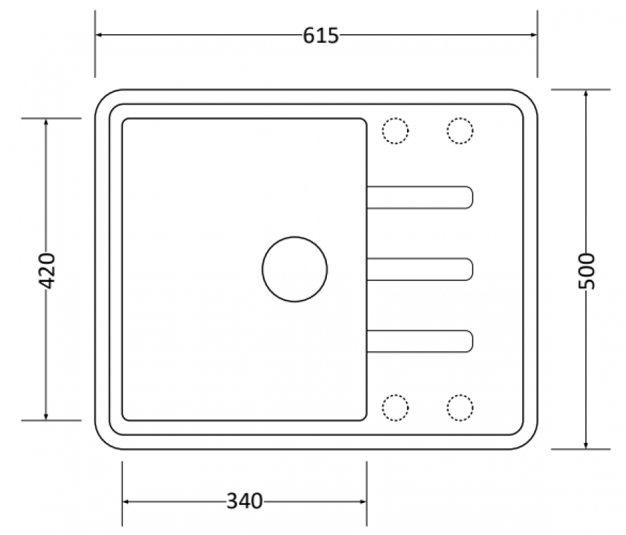 - Длина мойки: 61,5 см