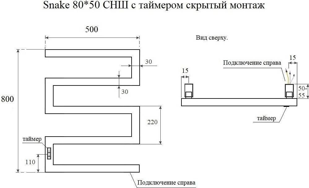 Полотенцесушитель для ванной электрический Маргроид Ferrum Snake СНШ Профильный 80x50 (графит, таймер слева)