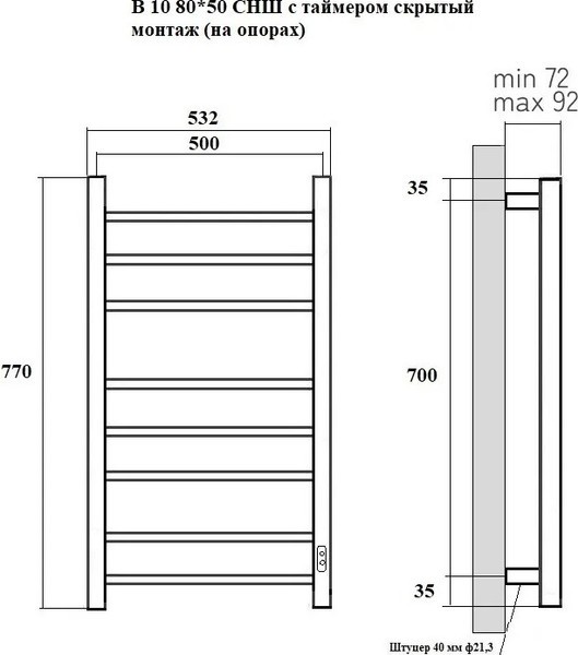 Полотенцесушитель электрический Маргроид Вид 10 СНШ 80x50 (таймер справа)