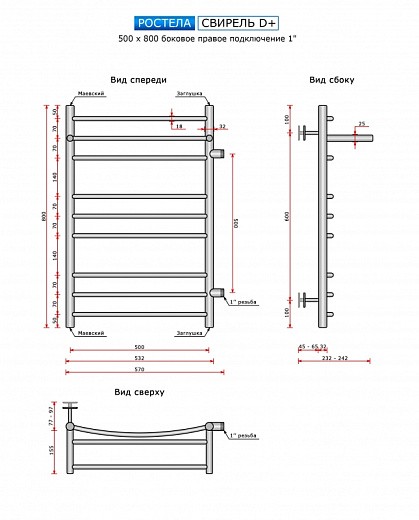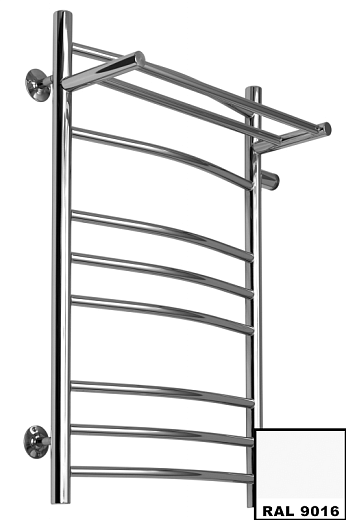 Полотенцесушитель Ростела Свирель D+ боковое подключение 1" правый 50x80 10 перекладин с полкой белый