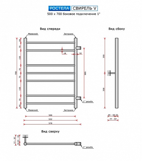 Полотенцесушитель Ростела Свирель V боковое подключение 1" 50x70 7 перекладин белый