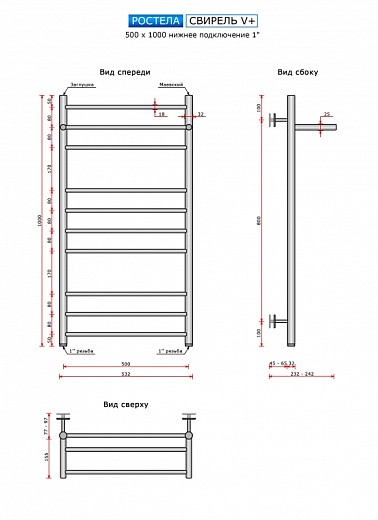Полотенцесушитель Ростела Свирель V+ нижнее подключение 1" 50x100 11 перекладин с полкой белый