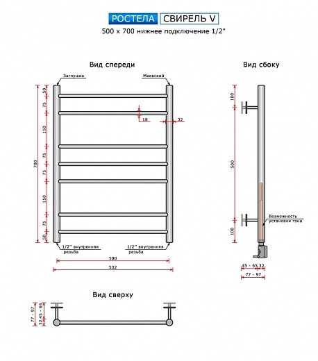 В нашем интернет-магазине Sanitek.by вы можете купить Полотенцесушитель Ростела Свирель V нижнее подключение 1/2" 50x70 7 перекладин черный по самой лучшей цене. Своим покупателям мы предлагаем доставку по всей Беларуси, удобную форму оплаты, рассрочку платежа.