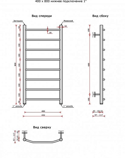 Полотенцесушитель Ростела Трапеция нижнее подключение 1' 8 перекладин 40х80 см