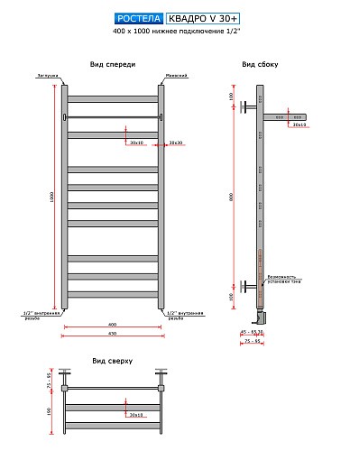 В нашем интернет-магазине Sanitek.by вы можете купить Полотенцесушитель водяной Ростела Квадро V 30 + нижн.подв.1/2" 400х1000/11 Ral 9005 чёрный по самой лучшей цене. Своим покупателям мы предлагаем доставку по всей Беларуси, удобную форму оплаты, рассрочку платежа.