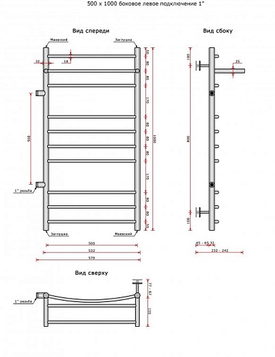 Полотенцесушитель водяной Ростела Свирель D+ (бок.подв. левый,1"рез) 500*1000/11