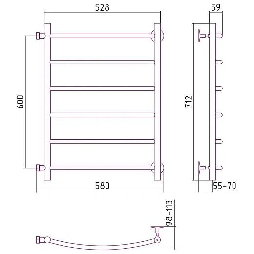 Полотенцесушитель для ванной водяной Стилье Версия-Б2, 50/60, 600x500, черный, 17612-6050