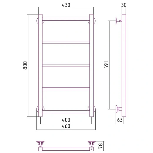 Полотенцесушитель для ванной водяной Стилье Версия-КН, 40/80, 800x400, белый, 12640-8040