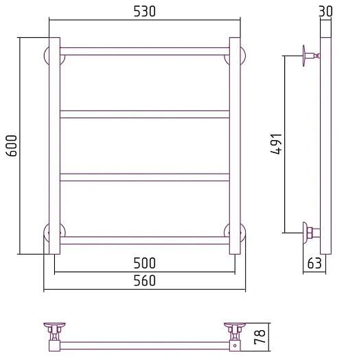 Полотенцесушитель водяной Стилье Версия-КН, 50/60, 600x500, белый матовый, 30640-6050