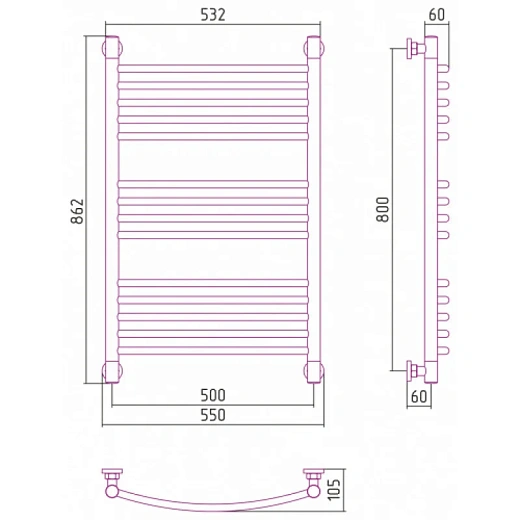 Полотенцесушитель водяной Сунержа Богема+ 15-0221-8050, 800x500, тёмный титан муар