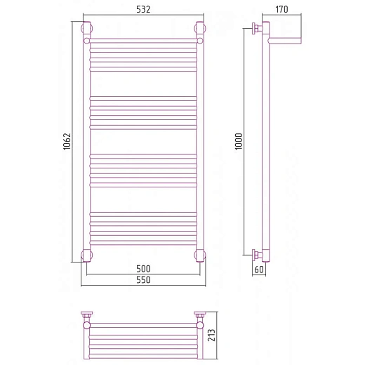 Полотенцесушитель водяной Сунержа Богема+ 15-0223-1050, 1000x500, с полкой, тёмный титан муар
