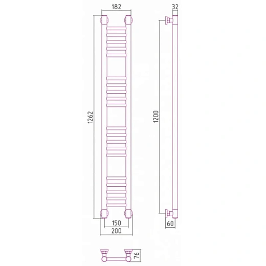 Полотенцесушитель водяной Сунержа Богема+ 31-0220-1215, 1200x150, матовый черный